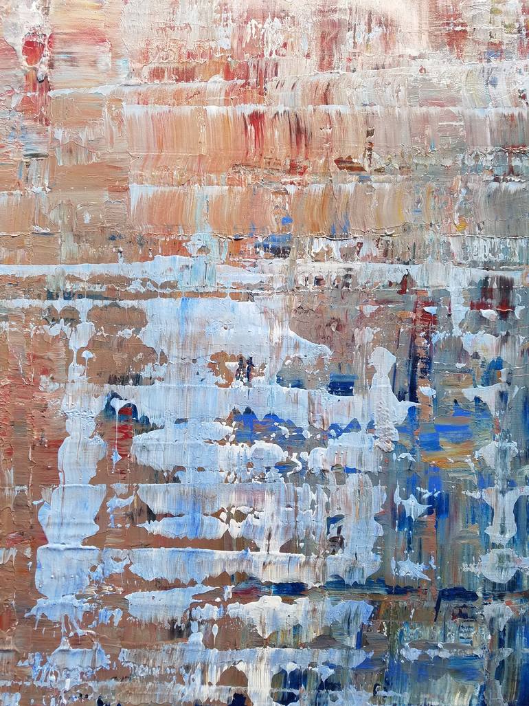 This painting belongs to my blue series where I keep adding various shades . . . ..Values of blue and achieving the desired results. Am pushed to add other colors as well as the painting unfolds.