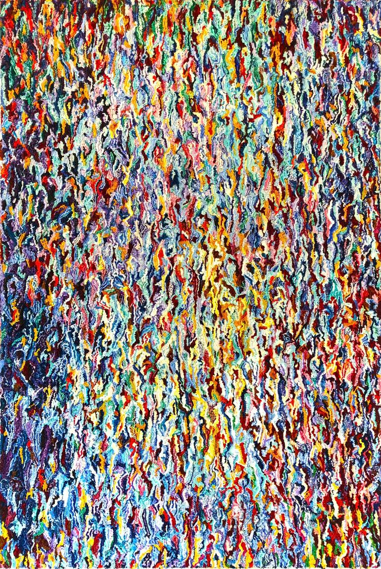 Oil painting on canvas created using heavy body, rich pigmented paints and unconventional tools such as a high-pressure paint gun with special pointed tips. This method allows you to create unique multi-layered 3D painting textures with a variety of paint stroke shapes.