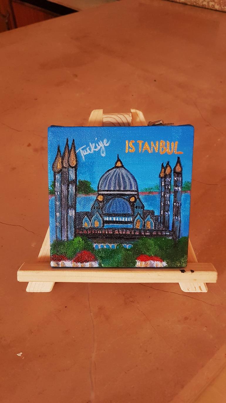 Istanbul City art on mini canvas. I've used acrylic paints. Size of the canvas is 4×4". You can also get it framed to look it more beautiful.