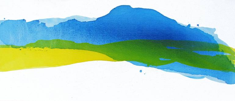 An extra large original abstract landscape painting inspired by a rolling mountain range. My work is minimal yet expressive in style, bringing a sense of peacefulness, yet also imbued with an underlying energy. It features delicate veils of poured acrylic paint, coupled with luscious, thick oil pain...
