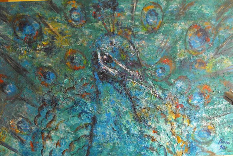 Mayur in Sanskrit, the peacock is a highly revered and worshiped bird. THIS PAINTING IS FOR SALE. IF YOU ARE INTERESTED IN PURCHASING IT PLEASE CONTACT ME.