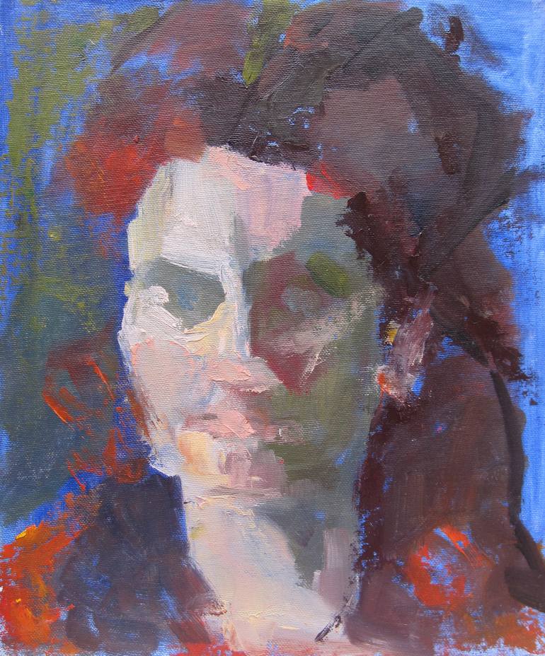 An expressive study of a woman's head, painted in loose brushstrokes with touches of the palette knife. This work captures a fleeting glance, crystallising a specific moment in time, whilst retaining a dreamlike quality.
