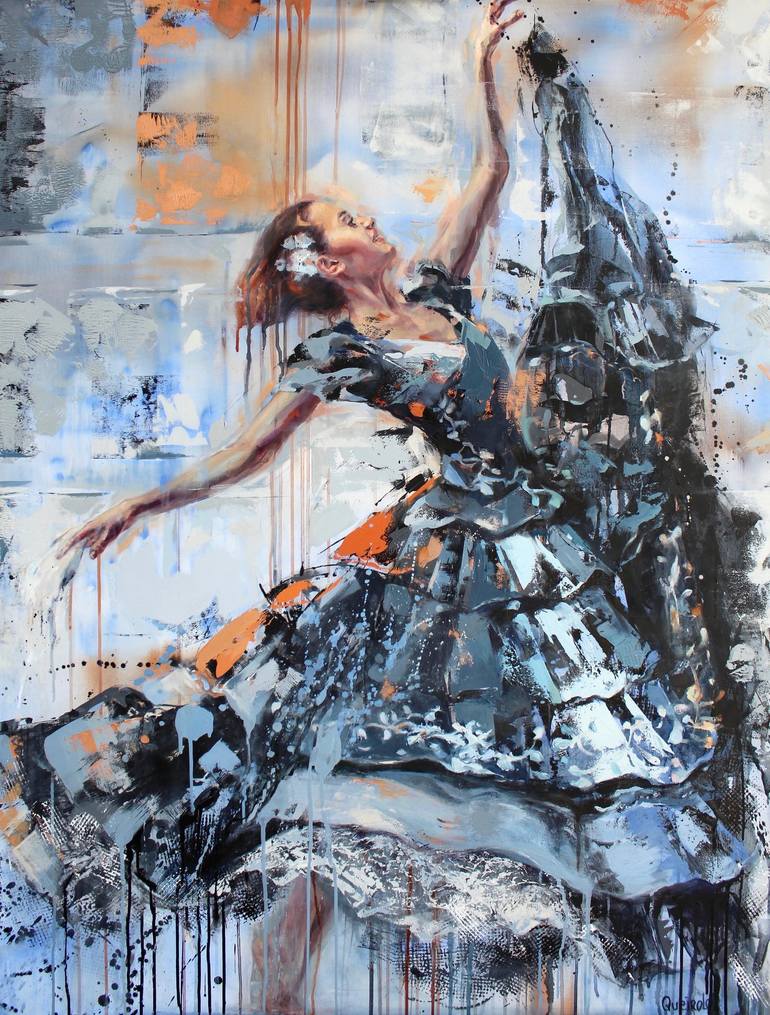 This painting is about a Latin American dance which has hispanic roots. The dancer is admired for her beauty and grace. Each year the most beautiful girl is selected as Queen of Spring to celebrate our national dance "Marinera" in Trujillo (a region in Peru).