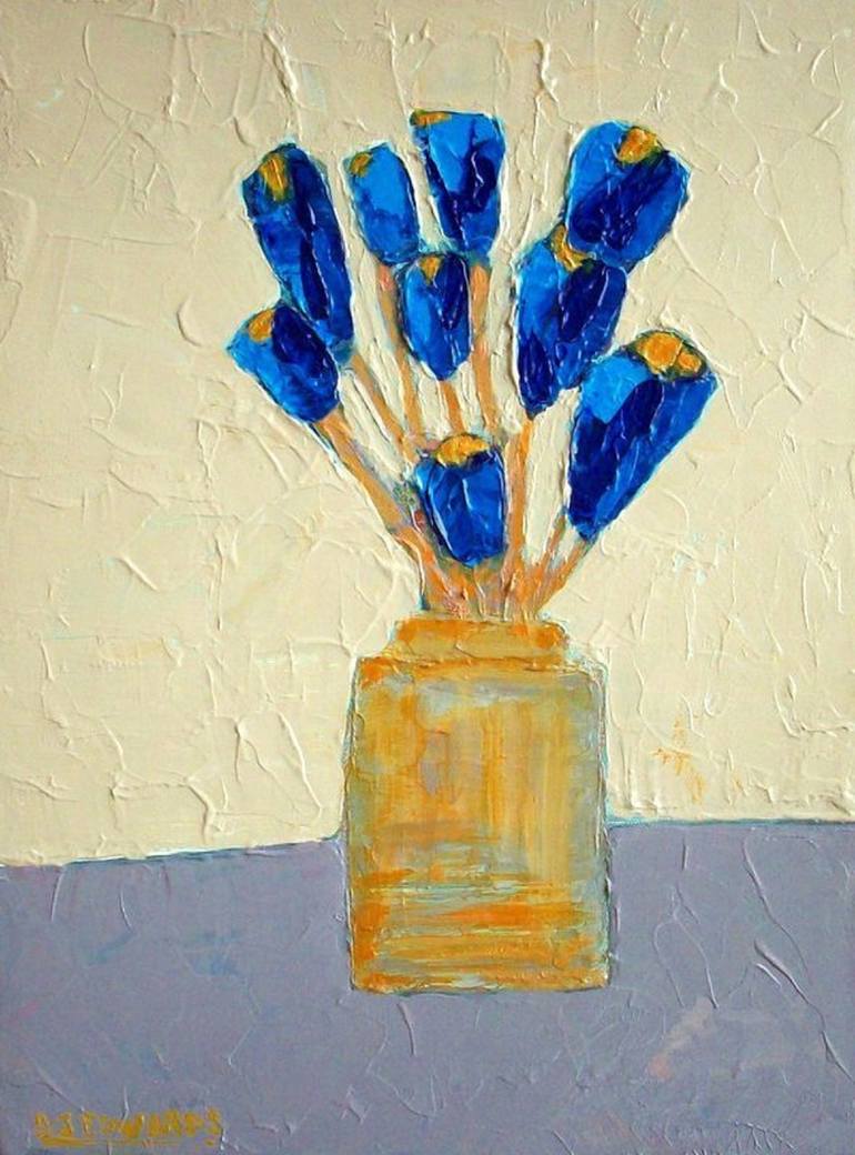 I was born in Essex, England in 1944 and immigrated to Canada in 1957. Now residing near Kelowna, British Columbia. Early influences on my style and career included John Constable and J. M. W. Turner. This influence may still be seen in my landscapes of rounded trees and powerful cloudscapes. Later, the work of the late French minimalist Nicolas De Stael played the most significant role in my development as a painter. I was moved by the manner in which de Stael was able to use subtle changes in color values and textures to shape his paintings rather than relying on detail. Edwards’ landscape paintings are abstracted to simple forms relying on texture and tonal variations to create drama. My still-life and flower works are painted with a palette knife and sometimes brush in acrylic either on canvas or panels. I build the shapes of the abstracted flowers, not being at all concerned with the type of flower, by layering subtle changes in tone and color value, creating my unique style of still-life. Most landscapes are painted with a brush although occasionally a palette knife may be used for effect. I've has had solo and group exhibitions in Vancouver, Whistler, Seattle, Charlotte, NC, Perth, Australia and others. My paintings can be found in many corporate and private collections across the world.