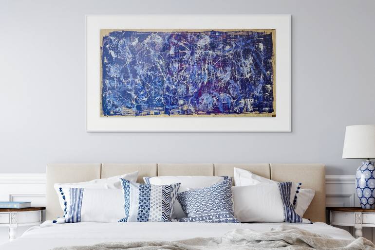 Blue Universe on Egyptian Papyrus Acrylic Enamel on Genuine Papyrus | Erik Kling Fine Art Inspired by my journey through Egypt and the Pyramids, this painting reflects my deep admiration for the ancient art of papyrus — a sacred medium once used for scrolls written thousands of years ago. In this p...