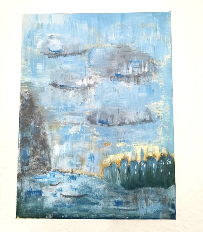 An abstract paint of a landscape seaside. Blue color full of emotions.