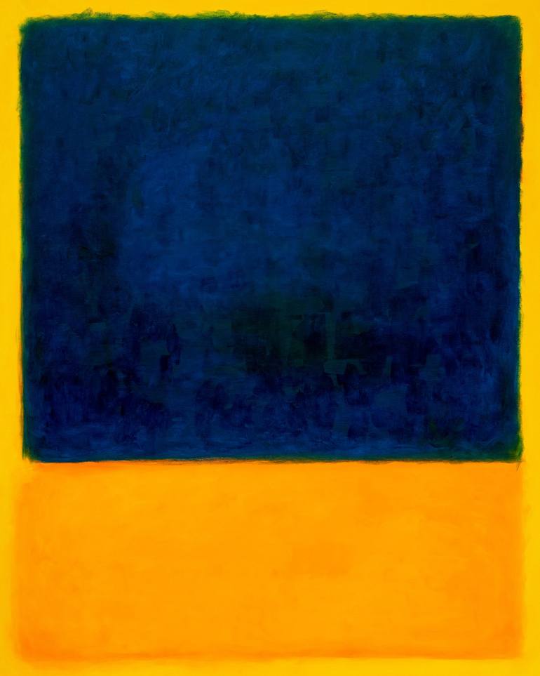 Large oil painting in blue and yellow colors inspired by the paintings of Mark Rothko