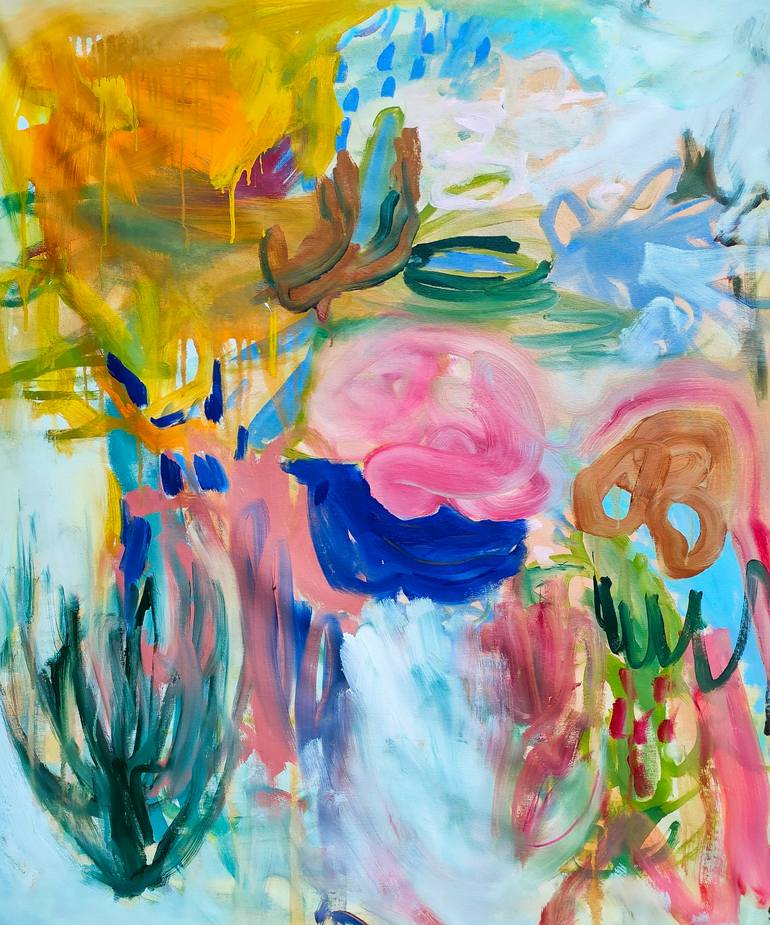 Colorful abstract painting inspired by Nature in summer. Worked in several layers with professional and high quality painting with anti UV protection and velvet rendering. Edges are painted in the continuity of the work. Signed on recto, verso and on the certificate of authenticity.