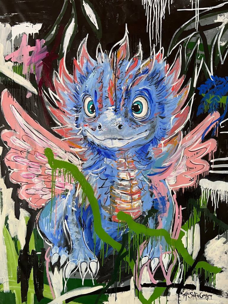 I wanted to create something fun and unique. I love the fast brush strokes and the dripping paint. Dragons have been around for thousands of years and they exist in lots of different cultures. They symbolise lots of different things so I will leave it up to the viewer to find their own story for thi...