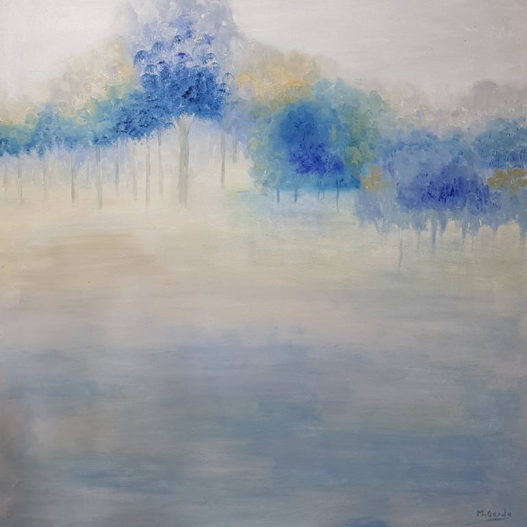oil on wood A new work for the blue forest collection. An enchanted forest with a special light
