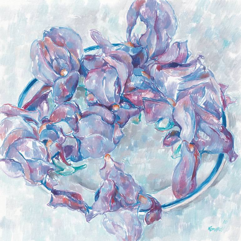 Blue irises painting floral original art botanical impressionism Painting