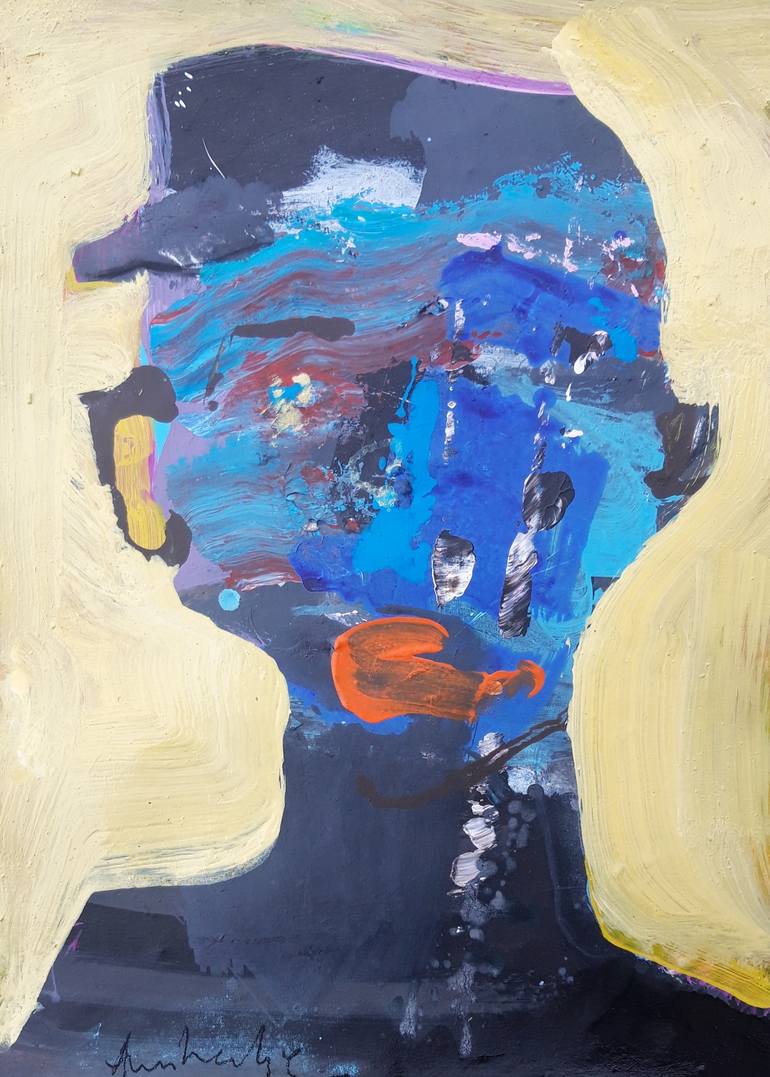Acrylic ,tempera on cardboard 70x50 cm blue man portrait