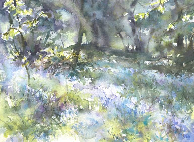 "Bluebells of Sidmouth woods -2" (2020) belongs to a series of three paintings based on my impressions from a trip to Devon (UK) in spring 2019.