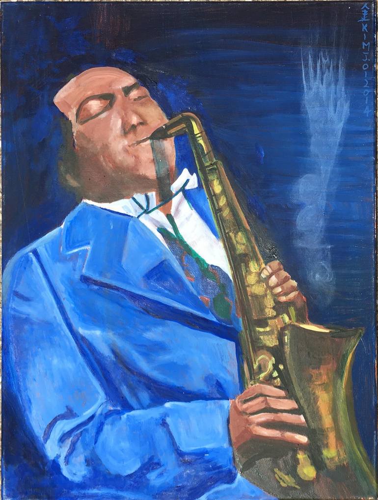 I am inspired by music. Blues man playing the saxophone. I hope the viewer can see and feel the blues man playing the blues in smoky room wearing the blue suit in some place before he died.