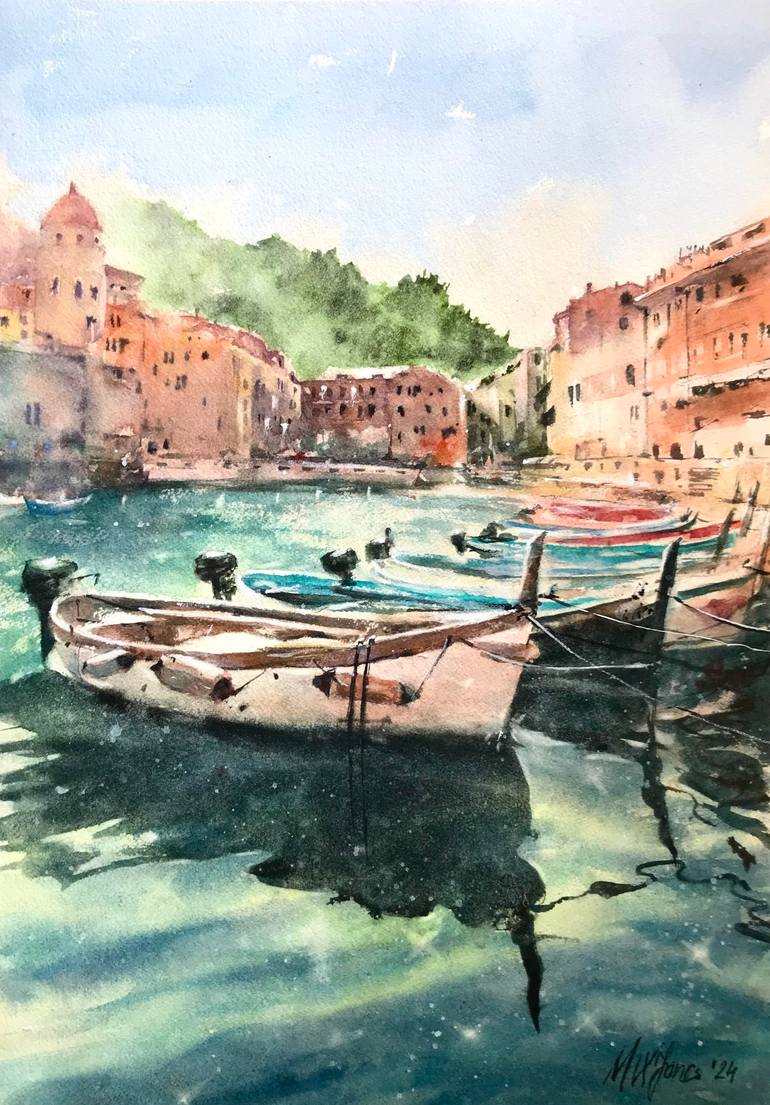 original watercolour painting inspired by Italian Coastline and Cinque Terre **this is 100% Original, one of a kind artwork and once sold it will no longer be available for purchase** Vernazza is one of the 5 centuries-old villages that make up the Cinque Terre, on northwest Italy’s rugged Liguria...
