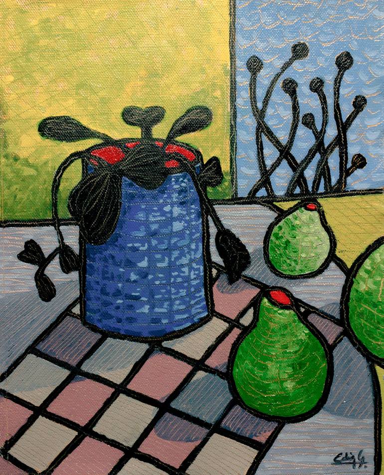 Edwin G. es un artista polifacético cuya práctica oscila entre la música y las artes plásticas, territorios que habita con la misma intensidad y libertad. Su obra se caracteriza por una investigación constante de la forma, el color y la composición, sostenida por una intuición afinada y una urgencia creativa que lo impulsa a explorar múltiples lenguajes. En su etapa temprana, el dibujo riguroso y el equilibrio en la disposición de los elementos definieron su enfoque plástico, mientras que el uso expresivo del color, con reminiscencias fauvistas, se consolidó como un eje central de su propuesta. Actualmente, su producción se mueve entre lo abstracto y lo figurativo, dos polos que aborda de manera simultánea, buscando puntos de cruce y tensión productiva. Estudioso disciplinado de la historia del arte, incorpora referentes de diversas épocas y corrientes, no para citarlos pasivamente, sino para reelaborarlos con libertad, humor y sentido crítico. Su obra es, en muchos sentidos, una conversación abierta entre lo aprendido y lo reinventado. El vínculo con el arte comenzó desde la infancia, marcado por un gesto fundacional: una enciclopedia ilustrada que su padre le regaló antes de que supiera leer, y que se convirtió en su primer contacto con el mundo de las imágenes. “Creo en el arte como una forma de conversación con lo invisible: a veces es una evocación, otras una interrupción. Pinto como quien intenta recordar algo que no vivió, pero que igual le pertenece.” — Edwin G.