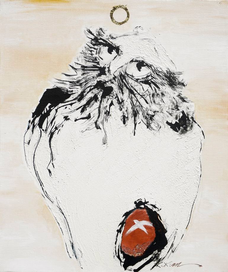 RMA My works are stories about hopes,dreams and yearning. White color is main, and black ink, gold leaf and ceramic soil are used. I believe that my Bodhidharma owl gives you good luck, health, and wealth by good energy.