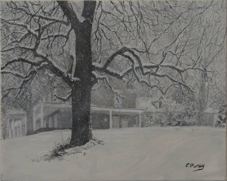 I fooled around with different way to make the snow and ended up using my fan brush and finger. Now everything in my painting area is covered with white dots. My screen, keyboard, mouse, hands, and shirt. That's the price we pay for a good storm. Hope you like it. It was fun.