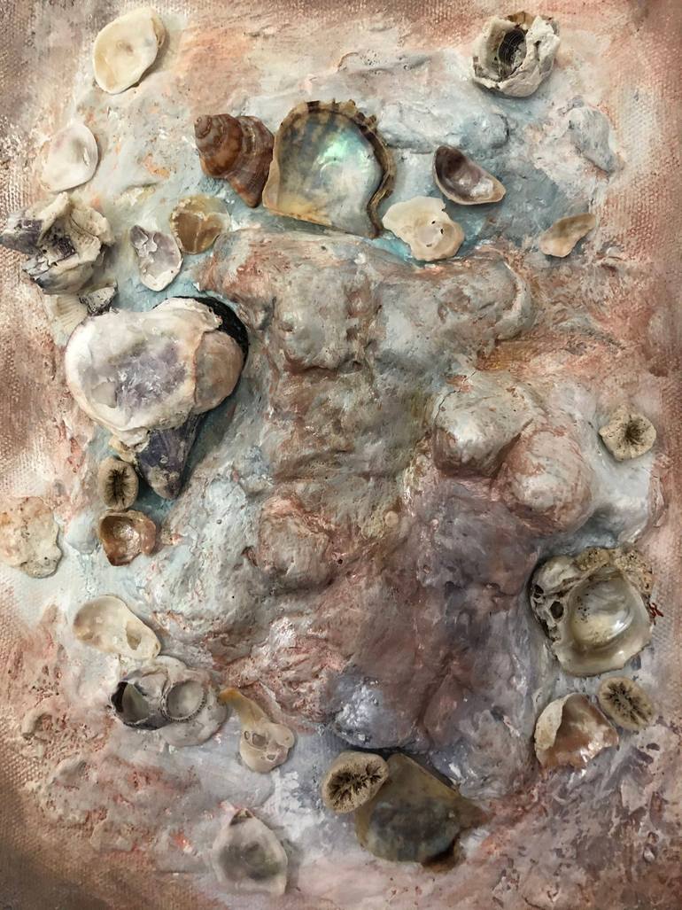 If we could see the colors of people according to their personalities, what color would they be when they were in love? I used pearly paint in some parts of painting. The shades of purple, blue and brown I used were inspired by the original natural tones on the shells. I wanted the background to hav...