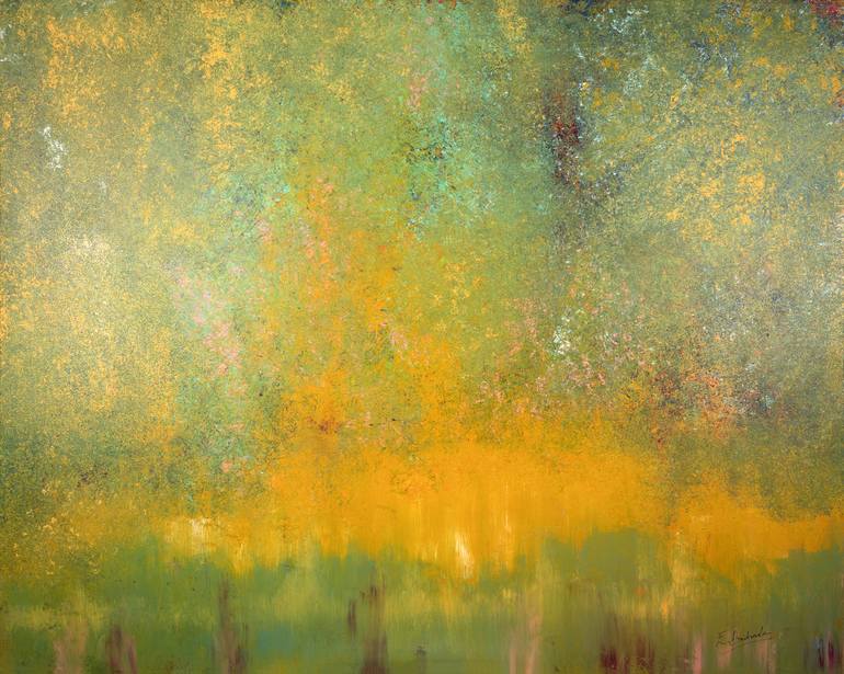 The landscape is the starting point of this abstraction work. The composition is based on layers of color that merge giving priority to green and yellow. There is an atmospheric search that is reflected in the texture and in the way of applying the paint. The main reason is the forest in autumn.