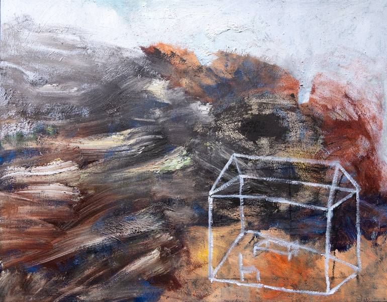 The bothy is built into steep mountain sides, and interact with the limestone by their form, views and exterior spaces; The painting style is intended to reflect the merging of the land with the built structure. A new series considering the impact of architectural structures on the land in the li...