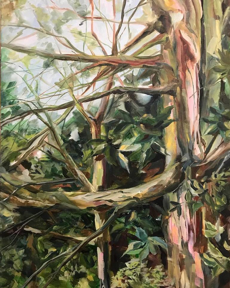 “Branches of Memory” is part of the series “Trees – like People”. Inspired by the play of light and shadow, the painting captures how branches intertwine like fragments of memory, forming a living network that connects past and present. The contrasts of illumination emphasize both resilience and vul...