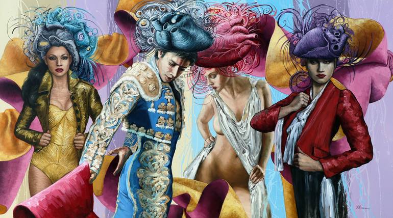 Figurative Fashion Models with Bullfighter. The images I work with come from pictures I take of live models, fashion magazines, bullfighting portals, and anatomy atlas. My painting aims to reflect the intimate relationship between the physical and spiritual aspects of the human being. In my latest...