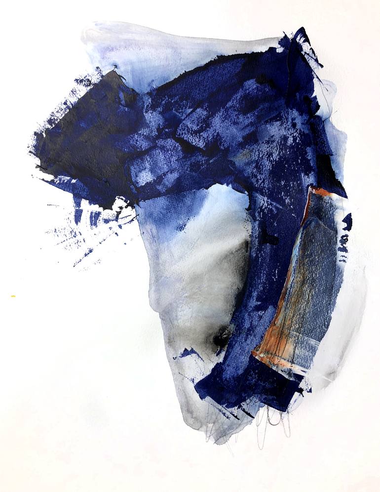 Deep blue gestural abstract painting on watercolor paper inspired by Brandy Brook flow in the Adirondack Mountains of NY