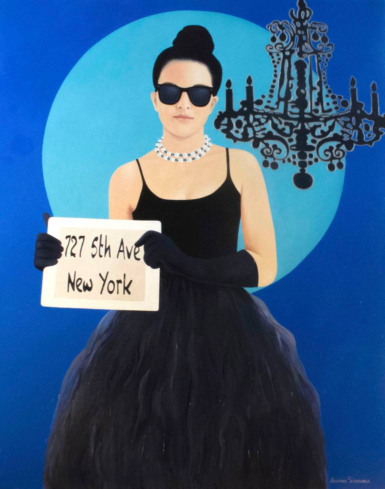 Inspired by the movie, of course, but also by the fact that there is now the possibility of having a breakfast at Tiffany's 727 5th Ave New York. So I have imagined a young woman on her way for the famous address, dressed in the style of Audrey Hepburn as Holly Golightly.