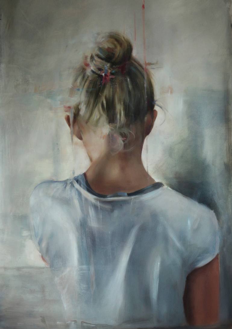 The paintings are always very figurative in which the focus is often on the face. However, these are not portraits as such. When I portray something, it is their understated and introspective posture, and they reflect my own introspective quest. The realization that identity is really just a story. It doesn't lead me to answers about who I am, but what I am. My body is an energetic vessel that I experience in my consciousness, not the other way around. We were never taught to look from that point of view. In an analytically programmed mind, this does not seem rational. The thinking exercise starts very intuitively at first, but gradually seeps back in rationally. The titles that some works are given can contribute to the expression of these thoughts, but I prefer not to restrict the freedom to experience the paintings too much. Painting, for me personally, foremost arises from an undeniable necessity and inexplicable urge. I'm not doing this as a conscious choice