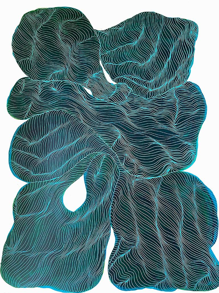 This image is one of a series of 'breath' paintings I started during lockdown in London, UK. The significance of breath has been so much on our minds at this time. This piece is my visuallisation of an internal breath, bounded by our bodies, before it is released into the world. I started to thin...