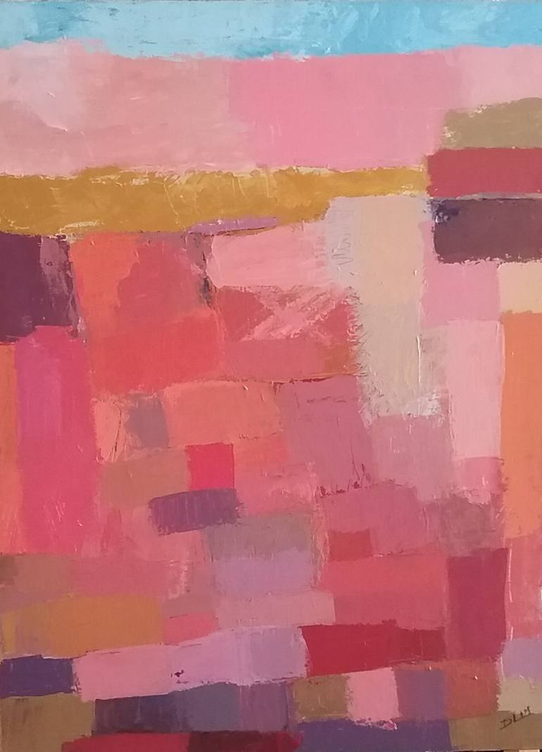 Automatic painting with a palette knife, i was enjoying mixing colors. As i laid them down the thoughts running through my head were of my father laying bricks and how life changes, I've completed the picture now. Its rather like a patchwork quilt the colors have meaning in my life growing up to wh...