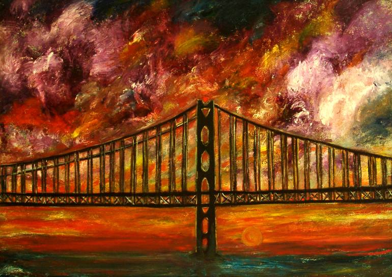 Truth and Light inspire every painting stroke, illuminating the fire of heaven when given the choice of which side of the bridge to be on. This painting is painted in an abstract impressionist style, the texture pops from the surface, revealing the richness of the oil.