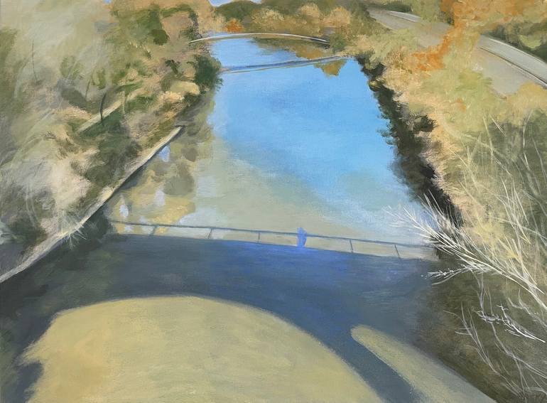 The Don river valley here in Toronto is close to where we live and when we walk across to the other side on the pedestrian bridge one can get different views of the river. On a particular autumn day this view inspired me to paint it. The colour of the shadow of the bridge on the water appealed to me...