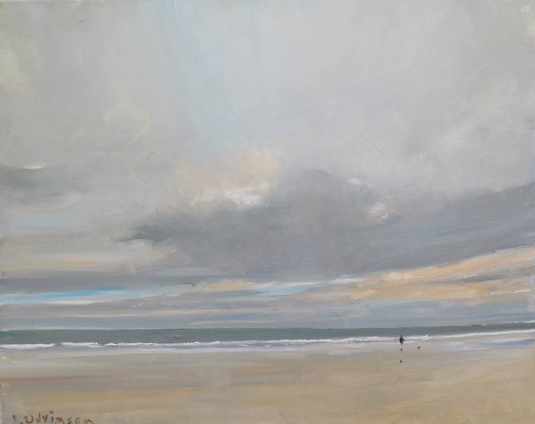Painted on Bridlington beach on a cold winter's day. I was attracted by the deserted beach and looming sky.
