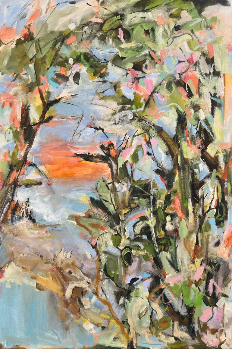 A flurry of connecting brushstrokes is my calligraphy, and the environments I paint are a mingling of places I’ve been, experiences I’ve accumulated, and energies I sense. I invite you to visually enter, and bask, in a painting. Let recognizable artifacts assist you in retrieving memories or activat...