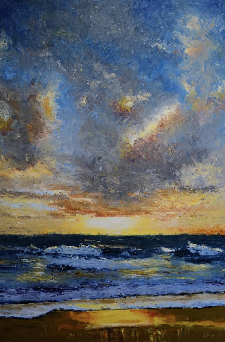 “My main influence is ‘light’ and the subtle contrast to dark, and how I manifest that with the use of palette knives, brushes and my hands, giving and impasto effect with the buttery texture inherent in oil paints. Oils dry slowly. This allows me to pause the process and began again with, perhaps, a fresh perspective.” - Beatris Burgoin Beatris Burgoin builds her visual world from the three primary colors and white, layering red, yellow, and blue into luminous harmonies that capture shadows, reflections, and the essence of place. Through her paintings, Beatris invites viewers to see landscapes, memories, and identities refracted through her distinctive prism of color—transforming familiar places and faces into stories of resilience, belonging, and beauty. Born into an art-loving family, she resisted painting until a near-death experience at 18 ignited her creative path. Her early works earned the admiration of her toughest critic, her father, who recognized that his artistic legacy would continue through her. While raising her son in Crestone, Colorado, Beatris developed her practice into a professional career, teaching, collaborating with arts organizations, and completing local commissions—including a community mural. Her paintings soon reached audiences far beyond Colorado, with exhibitions in Texas, Chicago, Barcelona, and Mexico City’s Los Pinos presidential palace, as well as recognition in British Vogue. A decade later, she returned to her hometown of San Juanico, Baja California Sur, where she founded a gallery that became a cultural hub for the small fishing and surfing village. Local faces and coastal sunsets from this chapter remain woven into her work. In 2022, Beatris relocated to Santa Barbara, where she continues to expand her vision. She has since won the People’s Choice Award at the Scape Artists Exhibition and shown in Arte del Pueblo at the Museum of Contemporary Art Santa Barbara.