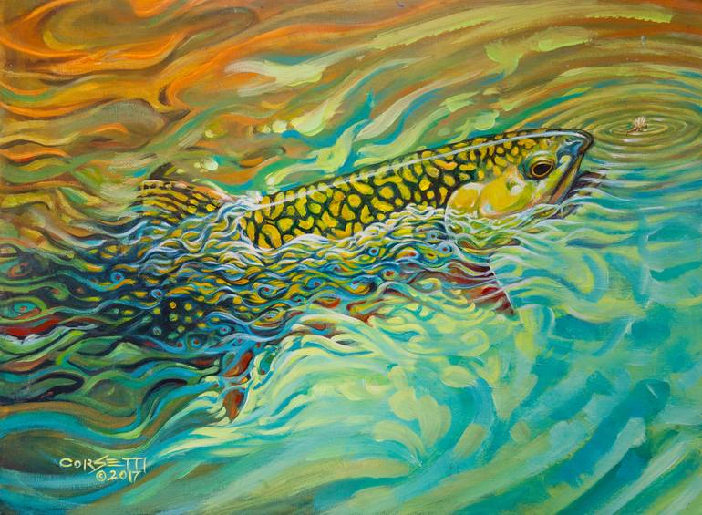 A flash of color, the way it hits, more of a feeling than actual seeing, in that split second just before a fish takes your fly you know what it is. This is why I hate having and a painting hanging around, they never really are finished - just abandoned. I have sold several prints of the original o...