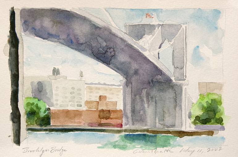 I go around New York doing watercolor sketches of the city. This one is the Brooklyn Bridge painted on May 11, 2002.