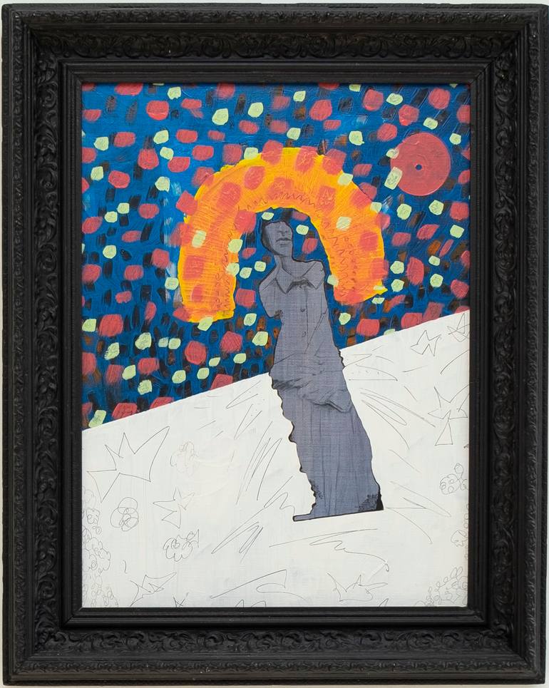 Bubble Gum Madonna is a bubbly piece created to present lightness and fun onto the idea of reverence. It brings together a series of elements that build up to an image designed to bring joy. Our central figure is a silhouette of the famous statue, Venus de Milo, by Alexandros of Antioch in 130 BC....