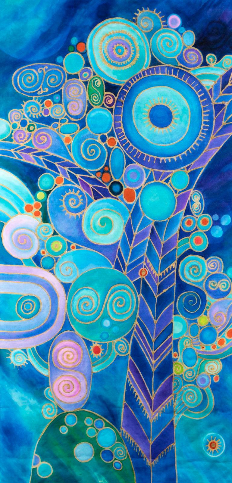 This work belongs to a series of paintings on silk. Made with aniline inks. This work is based on the movement of bubbles. The work is framed and the frame measures 70 x 50 x 2cm. Without the frame the work measures 55 x 26.5 cm