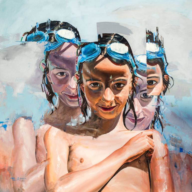 In this piece, I've used my own daughter as the model, employing a technique of image decomposition into fragments, which I then reassembled to cover the entire scene. This portrait merges realism with abstraction through the fragmentation of matter and space. I was particularly interested in explor...