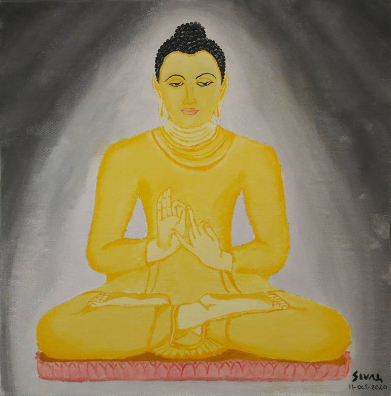 background grey colour is poster colour , main buddha painting by oil paint on a hand made canvas board