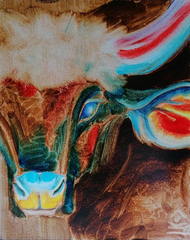 Your eyes met. Is his strength against yours? Or are you allies? Oil painting on cardboard. Unframed painting