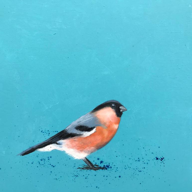 The vibrant little bullfinch animal totem is unafraid to express what makes its heart sing. The Finches as bird totems remind us of the important attributes of joy, appreciation, positivity and simplicity. The background is painted in several layers of acrylic paint and each layer is sanded down to...