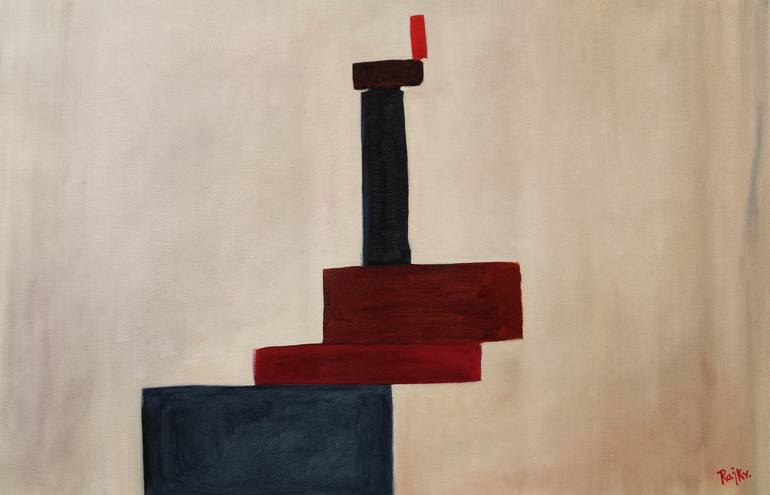 This painting evokes deep emotions with a very deep and light tone on a pale background. The composition is made by combined rectangular elements with contracting dark cool and warm colors. The overall composition gives this painting a sense of depth and weight and the viewers can fell the perceptio...