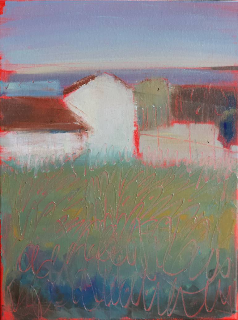 This is a small painting showing a typica mediterranean landscape.