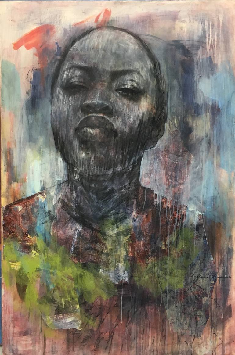 i was inspired by the extraordinary looks and facial expressions of this female. i have tried to capture the strong feeling and expression by mark making with the combination of colour. i hope one can see the strength of the work through the eyes. the Technic itself is motivated particularly by this...