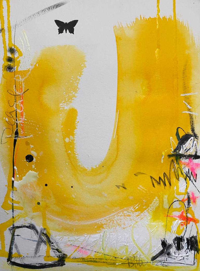 Butterfly No.15 #peace is a 30cm/11.81" W x40cm/15.75" H artwork on paper. (Perfect for a 40x50 cm frame) This expressive and emotive artwork is painted with high quality acrylic ink, neon paint, soft pastels on 310 g/qm thick paper. It is signed on the front and back, varnished for protection again...