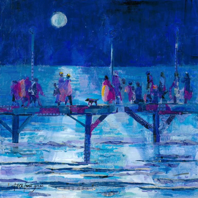 The work was inspired by night walks on the boardwalk with the full moon. Lots of people just enjoying the night and one another.